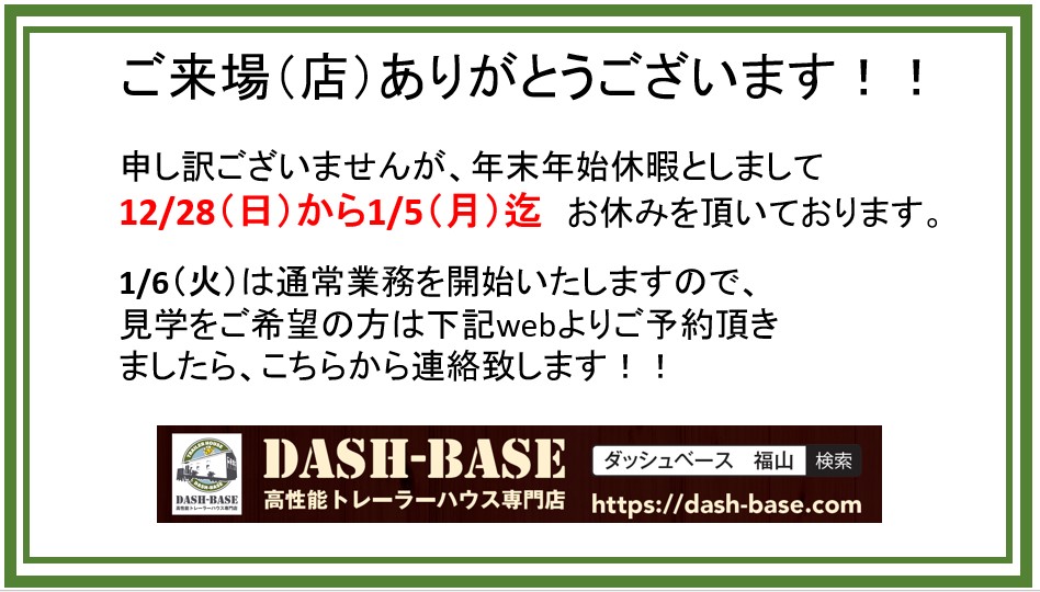 高性能トレーラーハウス専門店DASH-BASE 広島県福山市