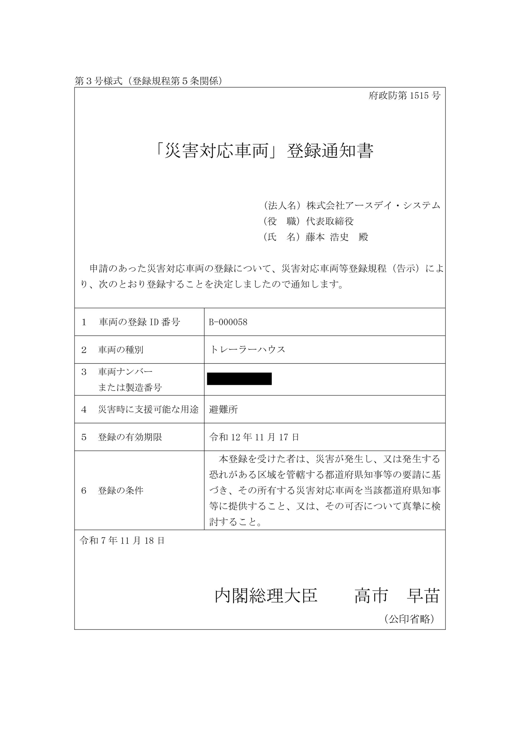 内閣府認定の災害対応車両